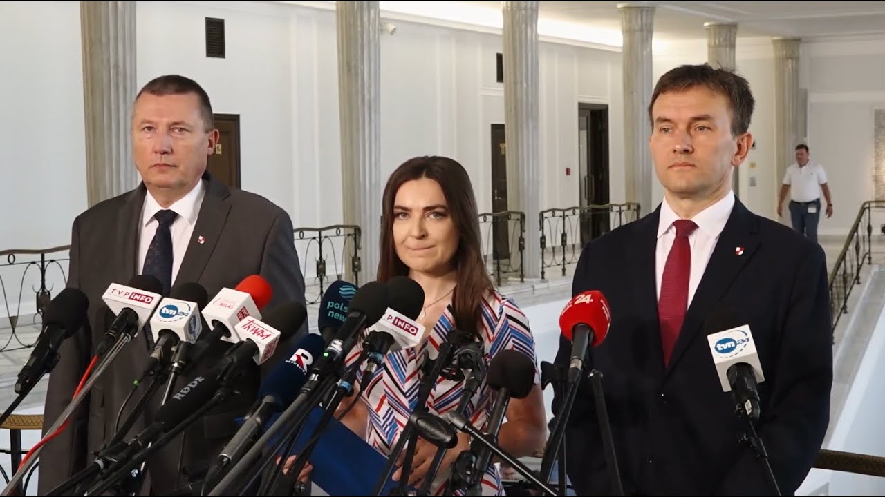 Konferencja prasowa z udziałem: Marty Czech, Jana Krysiaka i Piotra Heszena....