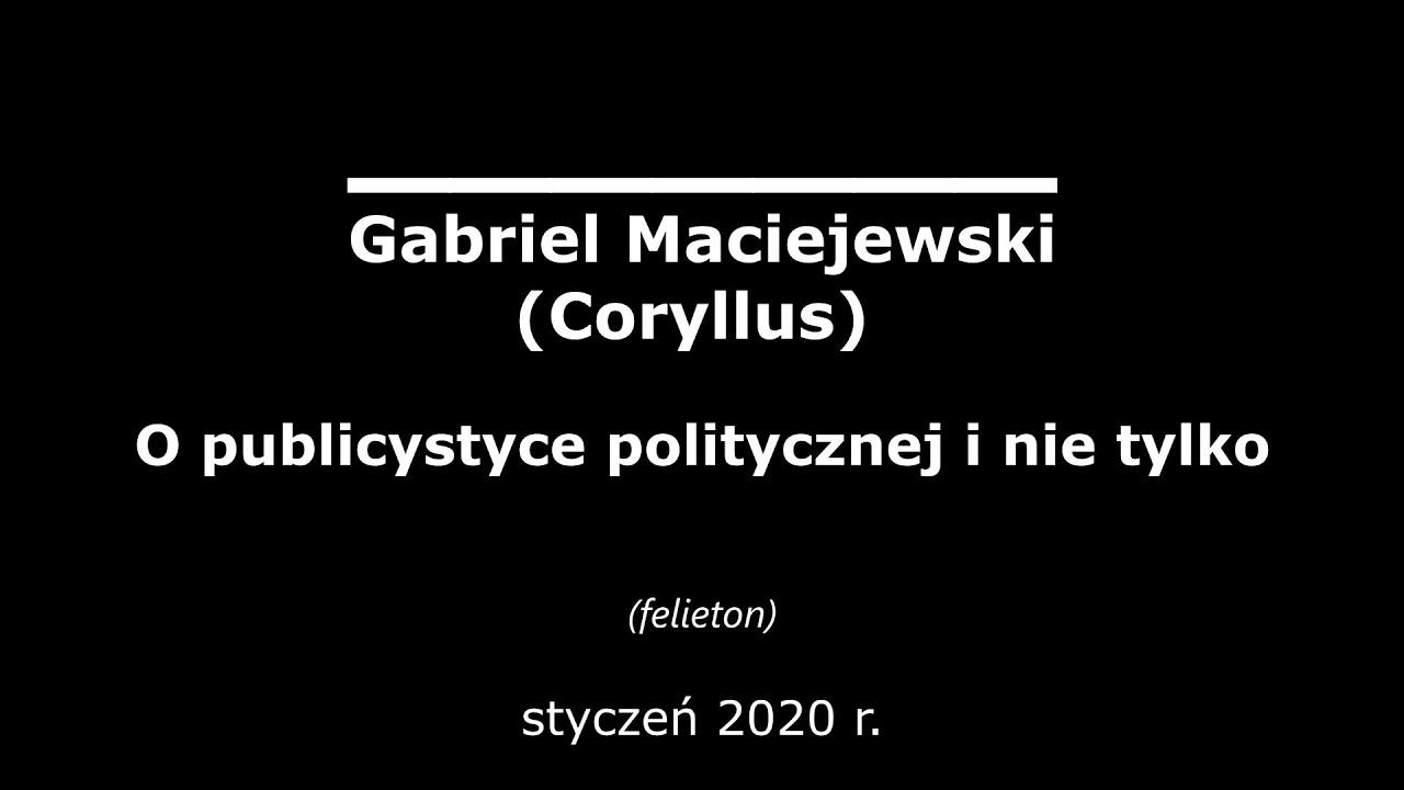 Refleksje Gabriela Maciejewskiego poświęcone szeroko rozumianej publicystyce – nie tylko politycznej...