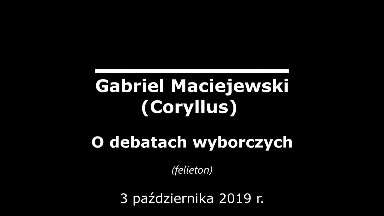 Felieton Gabriela Maciejewskiego kampanią wyborczą do Sejmu i Senatu, zwłaszcza debatami wyborczymi emitowanymi przez TVP...