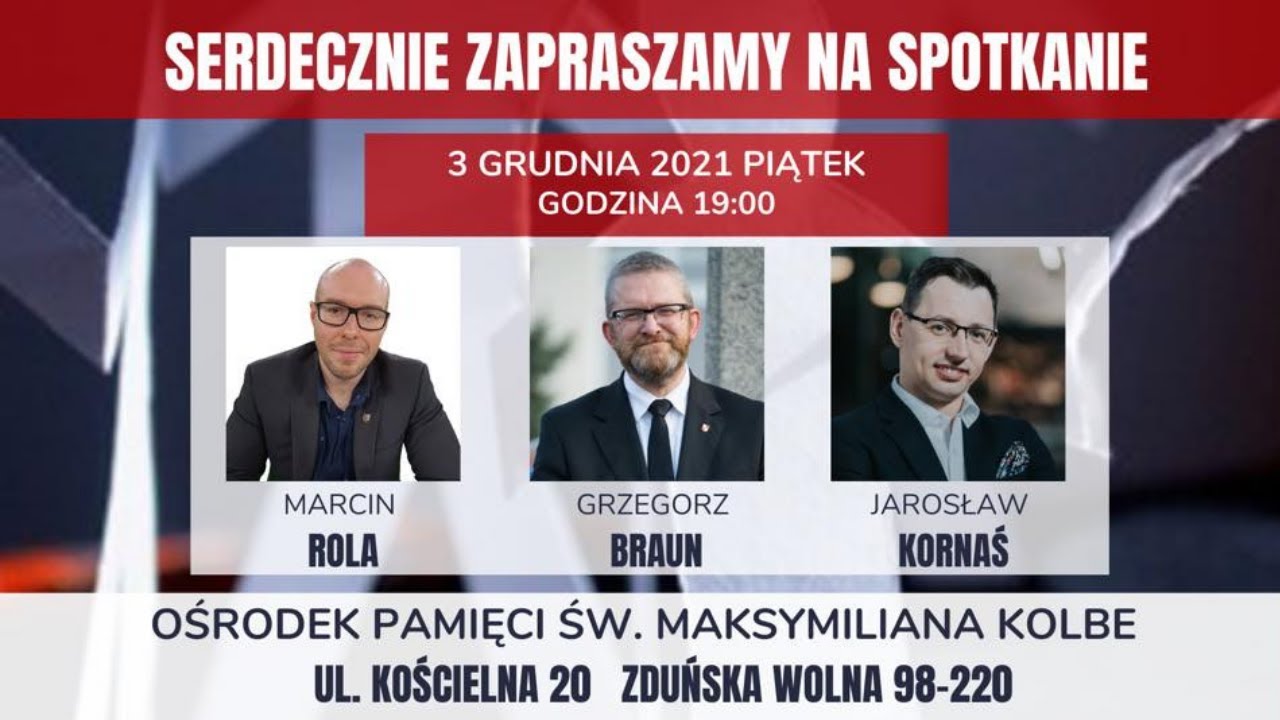 Spotkanie z Grzegorzem Braunem, Jarosławem Kornasiem oraz Marcinem Rolą w Zduńskiej Woli...