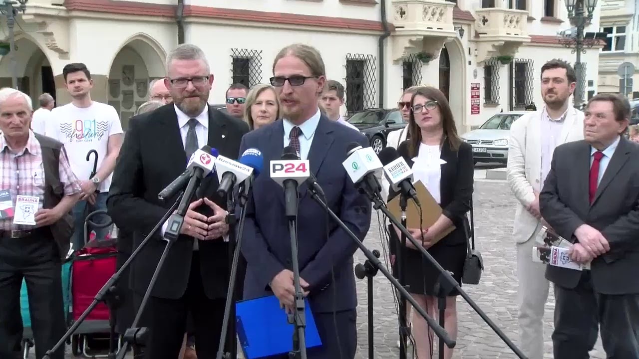 Konferencja Grzegorza Brauna – straż miejska musi zacząć bronić przedsiębiorców....