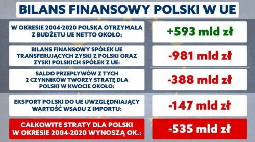 Saldo transferów finansowych między Unią Europejską a Polską